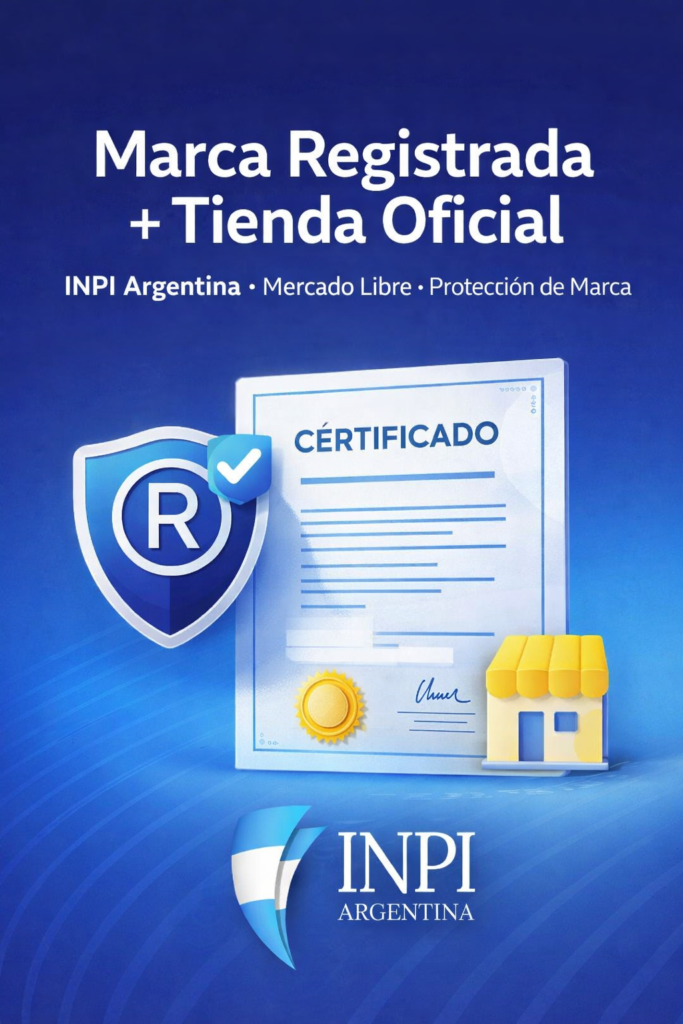 Registrar tu marca en el INPI Argentina es un requisito clave para vender con respaldo legal en Mercado Libre. Una marca registrada te permite proteger tu nombre comercial, evitar que terceros usen tu identidad y acceder a beneficios exclusivos como la Tienda Oficial, el sistema de Branding Protection y la defensa activa de tu catálogo. En Tu Marca Registrada realizamos el trámite completo de registro de marca, seleccionando las clases Niza correctas y alineando el proceso legal con tu estrategia de venta en Mercado Libre para que tu marca no solo esté registrada, sino correctamente protegida y lista para escalar.